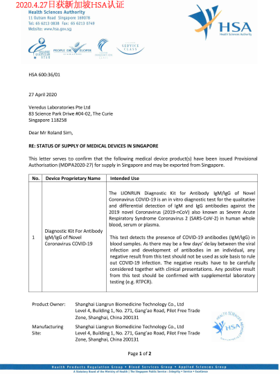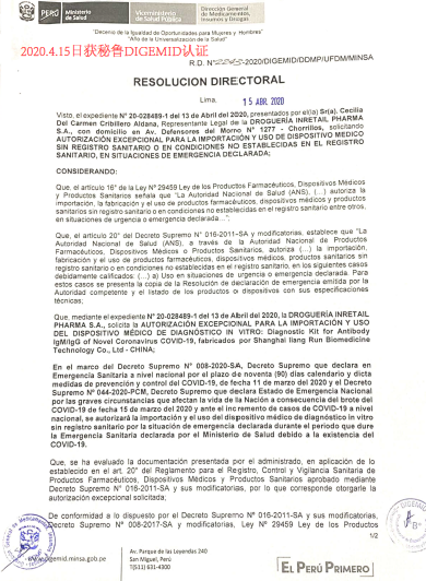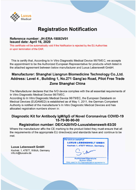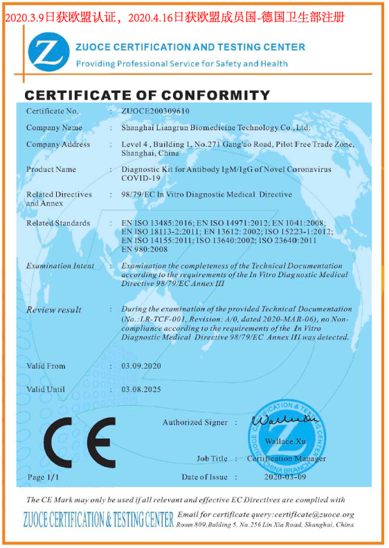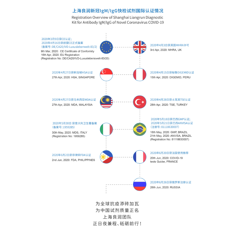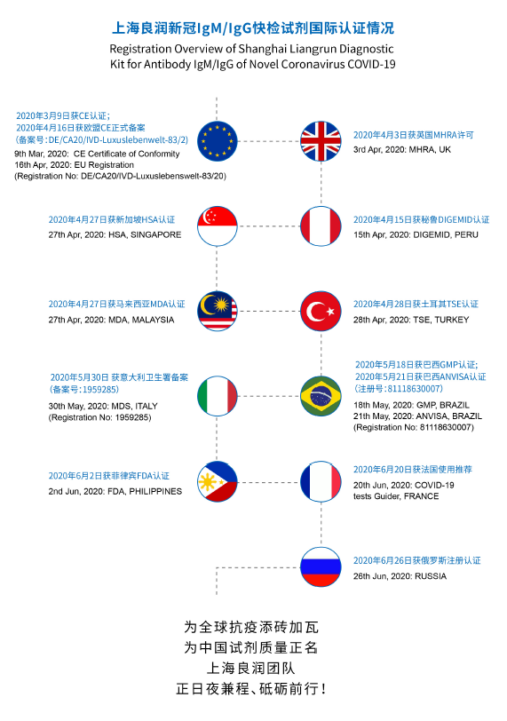 抗体IgG/IgM検査キットは、以下の国で認証されています。